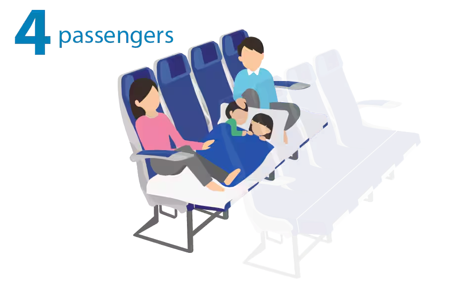 隣接する席のレッグレストを上げて、3席もしくは4席分をベッドのように利用することができるシートです(エアバスA380型機限定)。この座席を指定すると、専用寝具・シートベルトを借りることができます。